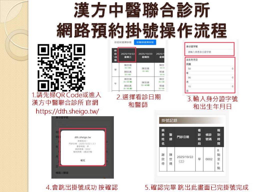 請至「漢方中醫聯合診所」官網進行線上掛號。